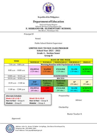 X Grade 4 Limited Face To Face Class Progra1 1 Docx